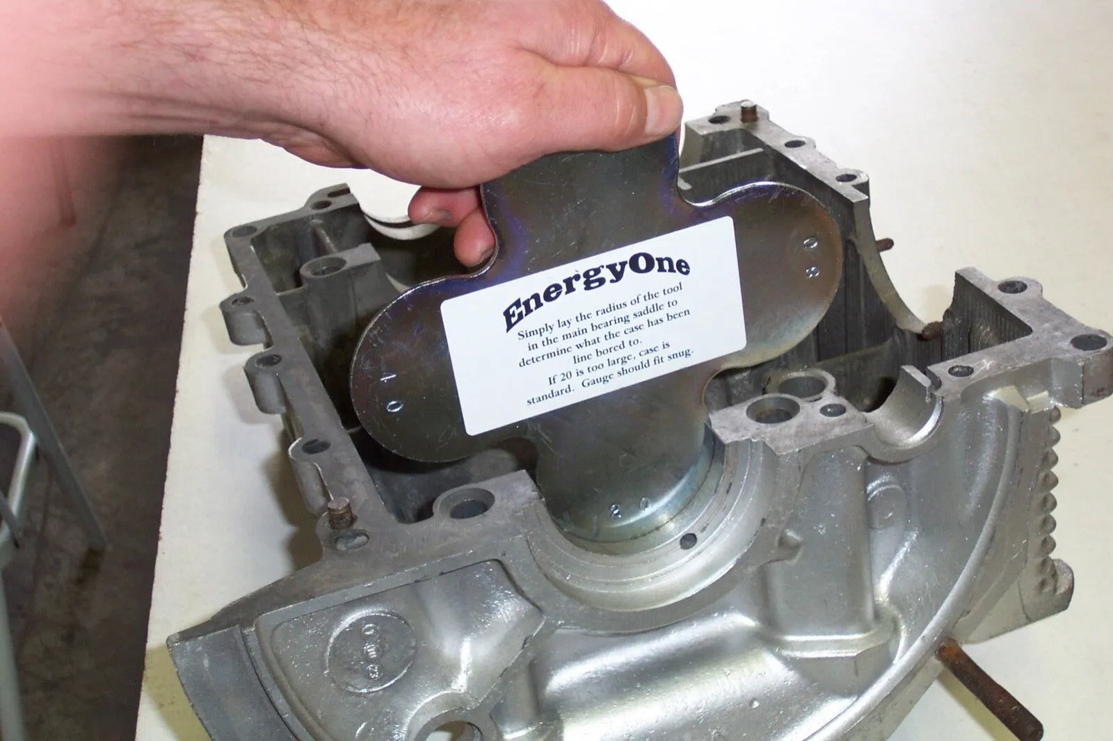 This tool is used to identify if your case is 20, 40, 60 or 80 on the main bearings. Great for swapmeets or junk yards to check before you purchase that used case that is not marked. Just lay it in the main bearing saddle to see which one it is.
